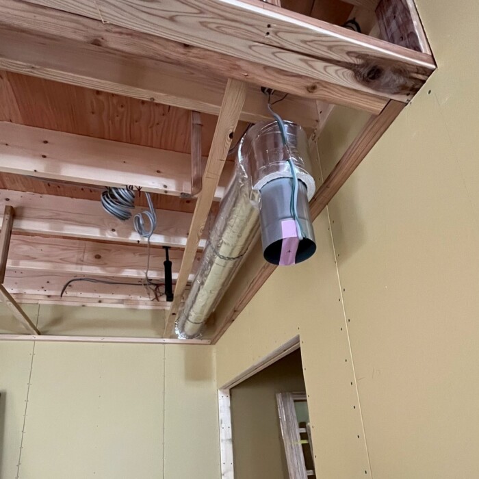 木造住宅の天井裏はスペースが限られ、ダクトの取り回しも難しいことが多いですが、当社では現場状況を把握した上で最適な施工をご提案しています。